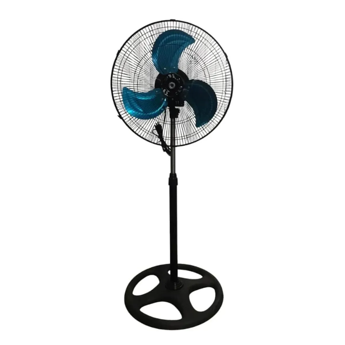Este ventilador de pedestal de 10 pulgadas es la solución ideal para refrescar cualquier espacio sin ocupar demasiado lugar. Su diseño práctico y moderno incluye 3 aspas aerodinámicas de color azul que garantizan un flujo de aire eficiente y silencioso. La rejilla metálica ofrece mayor seguridad, mientras que la base redonda y resistente proporciona una excelente estabilidad.